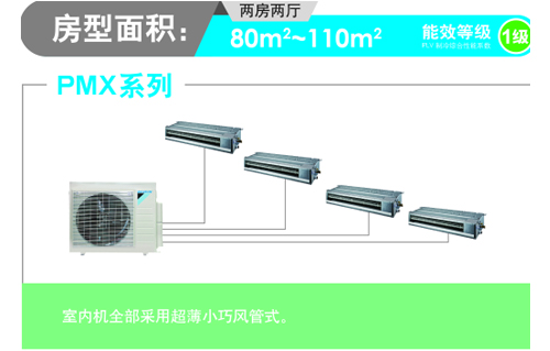 灵活对应80㎡-110㎡的两房两厅不同房型的空调需求,小巧型室内机便于结合内装。